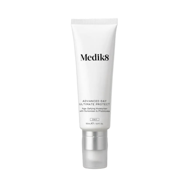 Medik8 Advanced Day Ultimate Protect is a powerful daytime moisturiser that works hard to shield skin from the effects of the sun and deliver long-lasting moisture.