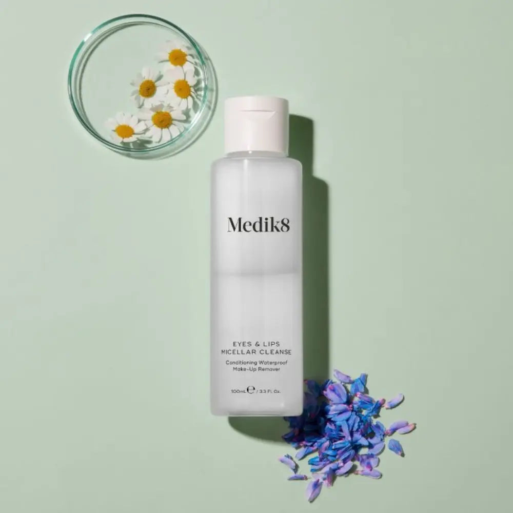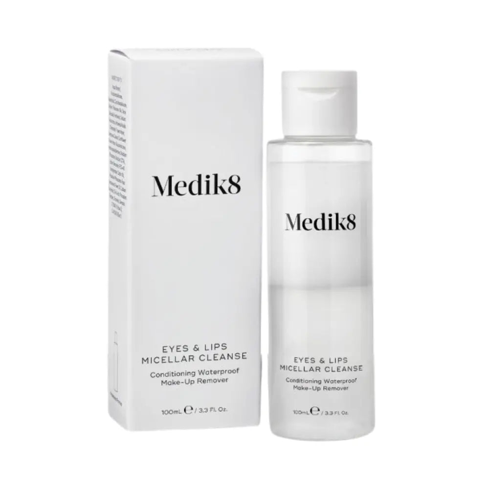 - Apply a small amount of Medik8 Eyes & Lips Micellar Cleanse to a cotton pad, gently press over eyes or lips for a few seconds and sweep away until make-up free.