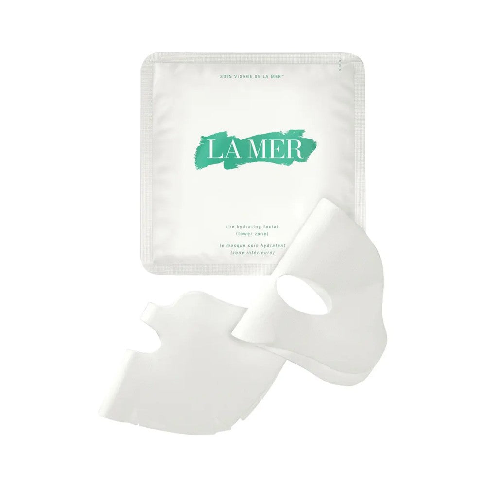 - Unfold La Mer The Hydrating Facial Mask and apply each mask half to clean skin.