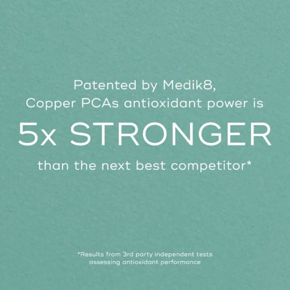 這款超級英雄精華液富含銅的力量,銅是健康肌膚所必需的礦物質。但不僅僅是任何銅 - 這是生物銅PCA,一種容易被皮膚吸收的銅形式,使皮膚更緊緻。