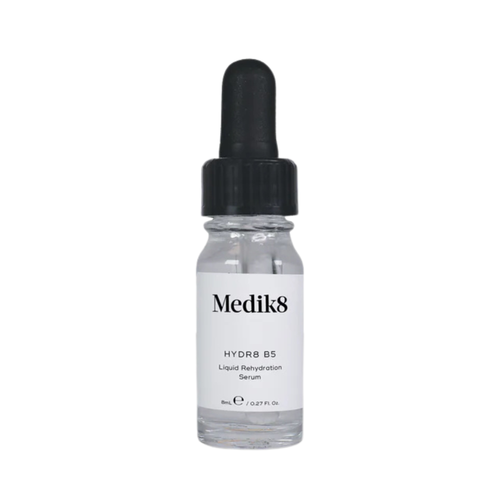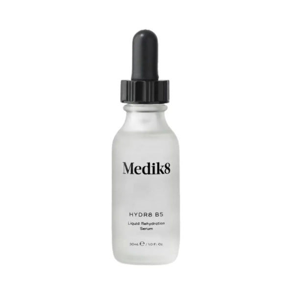 隆重介紹適合您肌膚的終極補濕劑:Medik8 的 Hydr8 B5 精華液!這款奢華的靈丹妙藥就像一大杯水,讓您的膚色變得豐潤、水嫩、彈滑。