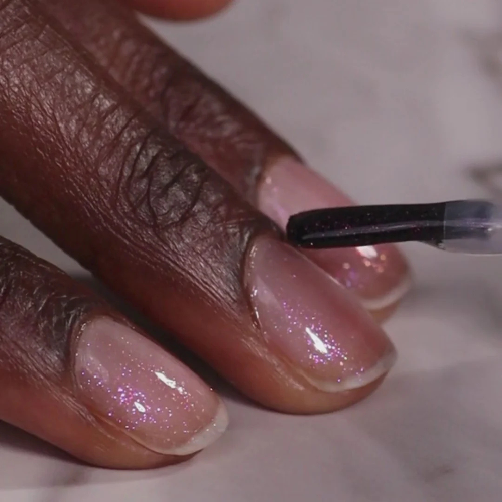 - Apply 1–2 thin, even coats. One coat gives a subtle shimmer; two coats deliver cosmic radiance.