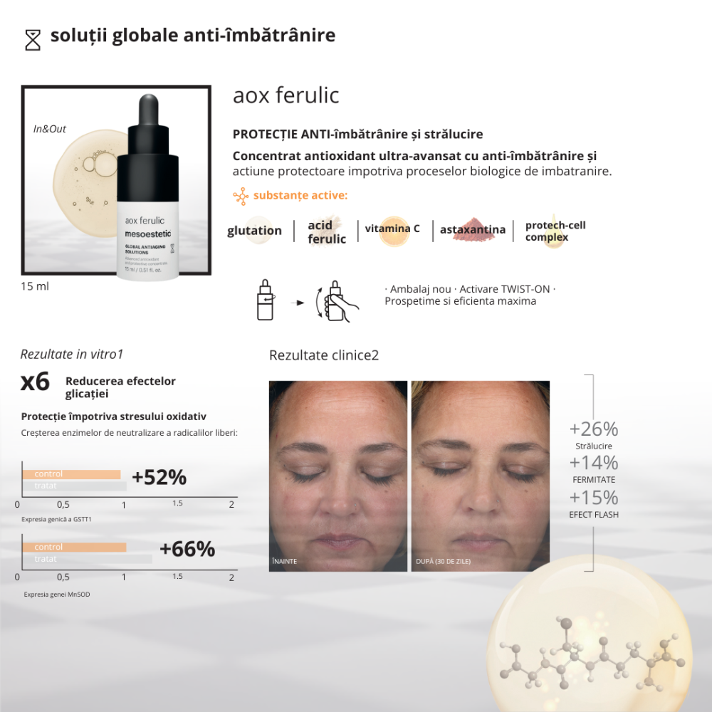 We suggest making Mesoestetic Aox Ferulic EVO part of your AM & PM skincare ritual for optimal antioxidant and anti-ageing defence!