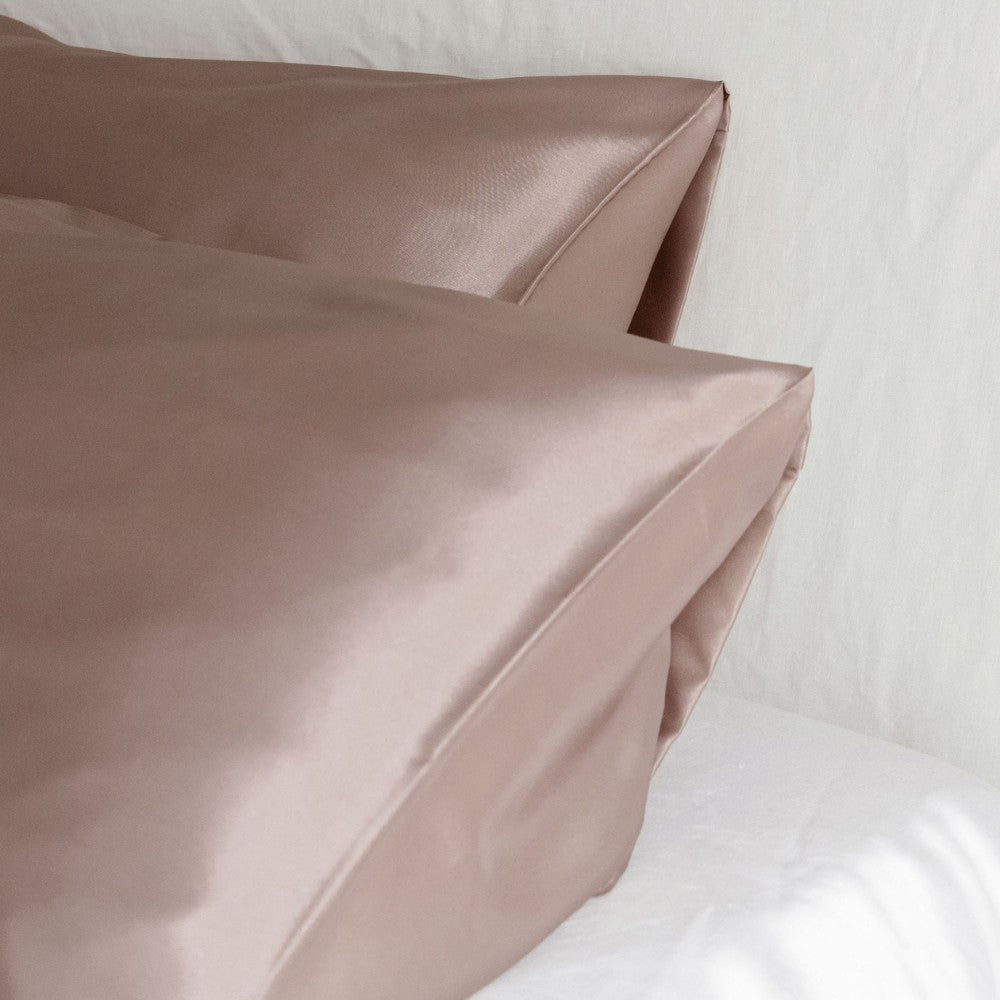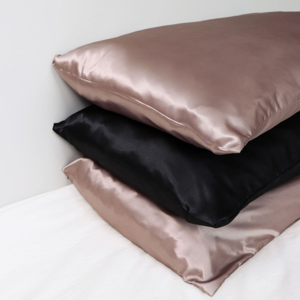 Unlike traditional cotton pillowcases that can drag and pull at delicate facial skin, the glossy finish of VANI-T Bed Head Beauty Pillowcases glides gently across your skin to prevent morning pillow marks and facial puffiness - they'll even protect your lash extensions!